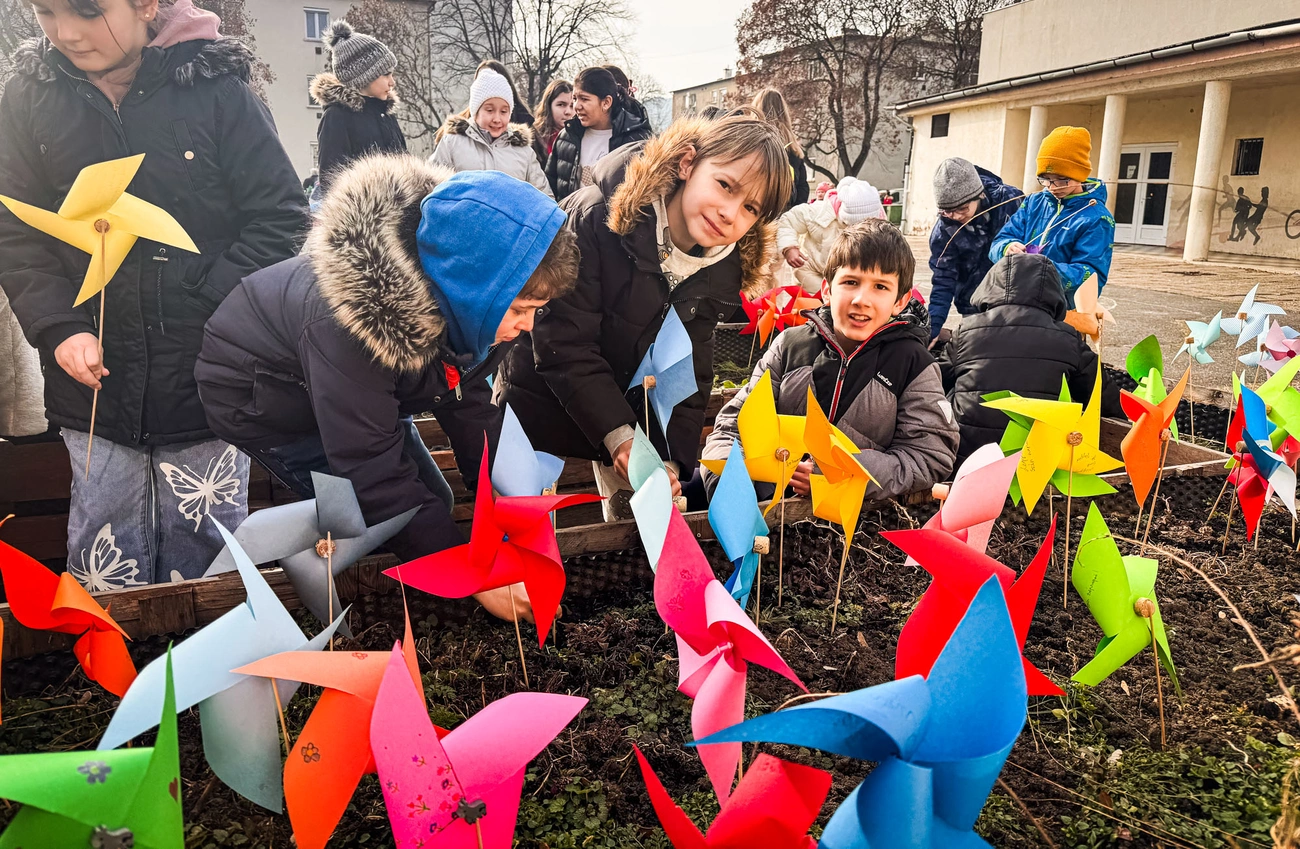 A Kaffka Margit Általános és Alapfokú Művészeti Tagiskola idén ünnepli fennállásának 65. évfordulóját. Ebből az alkalomból látványos flashmobot adtak elő február 12-én, szerdán délelőtt. Valamennyi tanulójuk összeállt egy fényképre és a hatvanötös számot formálták meg. Minden diák egy színes szélforgót fogott a kezében, amelyekre jó kívánságokat írtak és ezeket „elvitte a szél.” Először az arcuk előtt tartották, majd pedig az ég felé emelték papírból készített szélforgóikat.