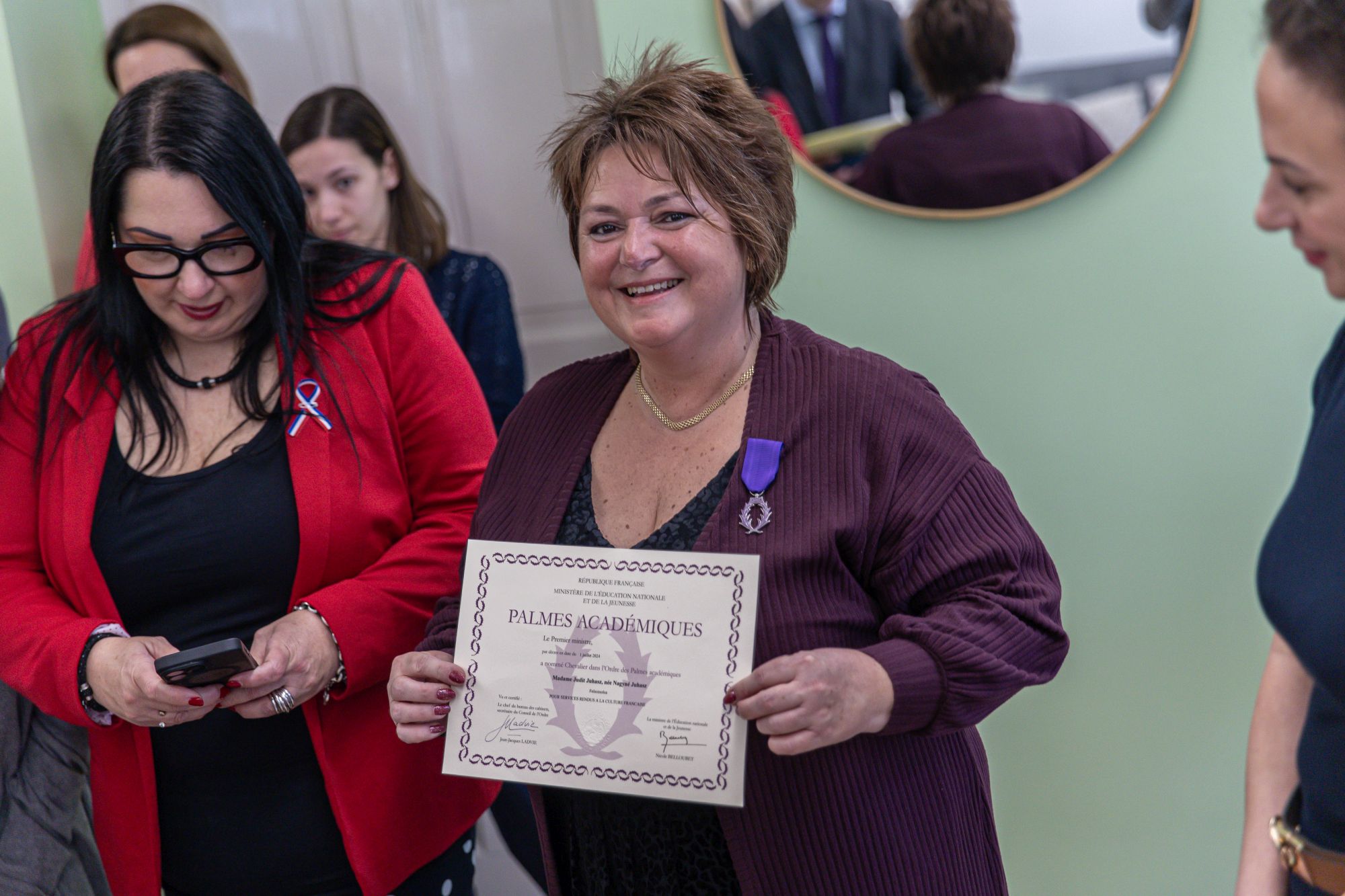 A francia két tanítási nyelvű Miskolci Zrínyi Ilona Gimnáziumban hagyomány, hogy minden évben megrendezik a Frankofón napot, amikor a francia kultúrában mélyednek el a gyerekek. Idén a március 27-ei alkalmon magas rangú kitüntetésben részesült Nagyné Juhász Judit, a gimnázium francia-történelem szakos tanára. Az Akadémiai Pálmarend lovagja elismerést a francia oktatási miniszter adományozza azoknak a tanároknak, akik kiváló munkát végeztek a francia nyelv oktatásának területén. A kitüntetést Jonathan Lacote, Magyarország francia nagykövete nyújtotta át.