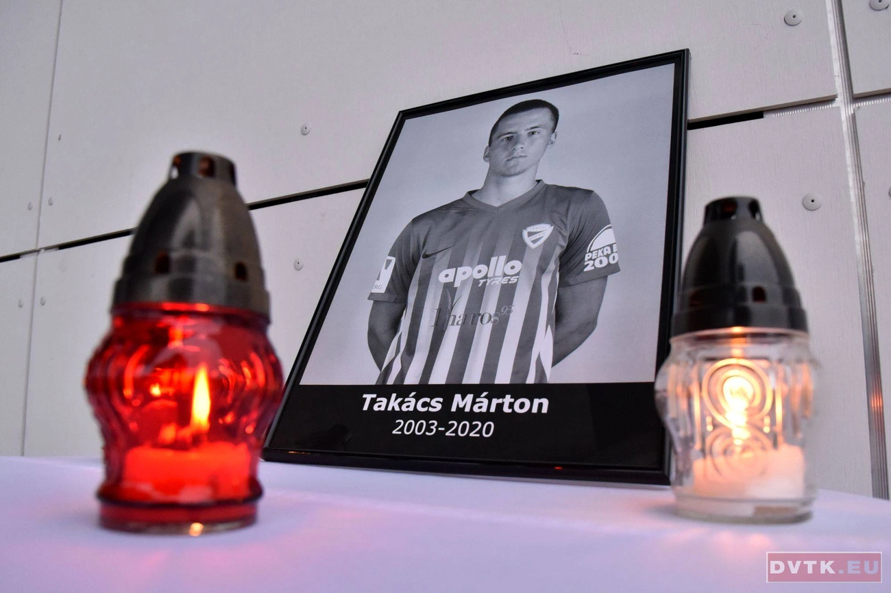 A DVTK család tagjai közös gyertyagyújtással emlékeztek Takács Mártonra, a klub U17-es labdarúgó-csapatának kapitányára.