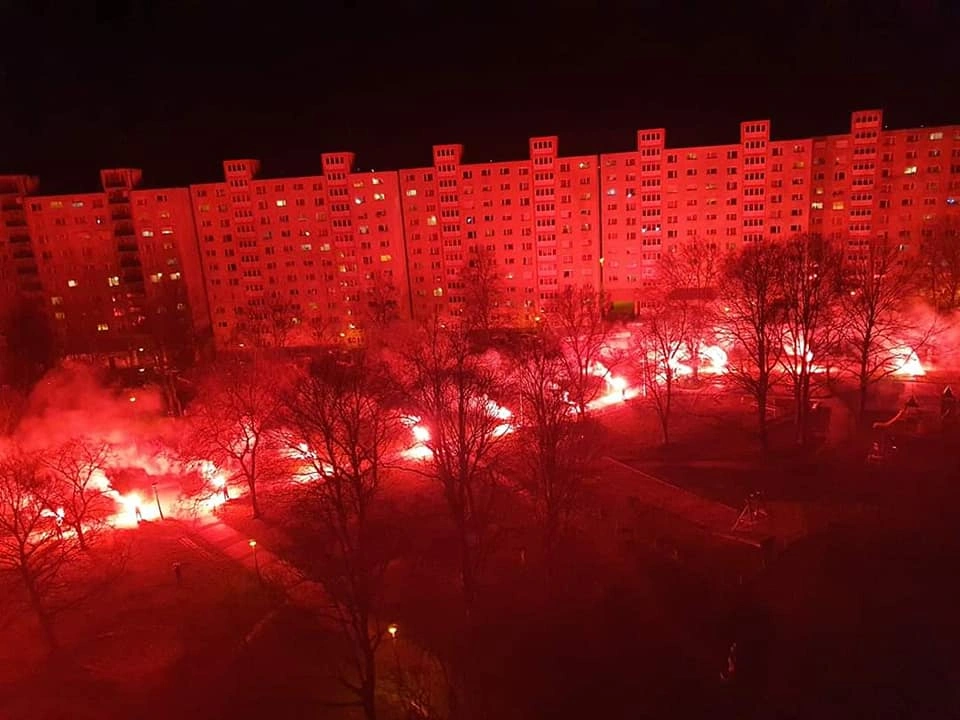 DVTK-szurkolók mondtak köszönetet az egészségügyben dolgozóknak péntek este. Látványos fotók, látványos videók készültek! Mutatjuk!