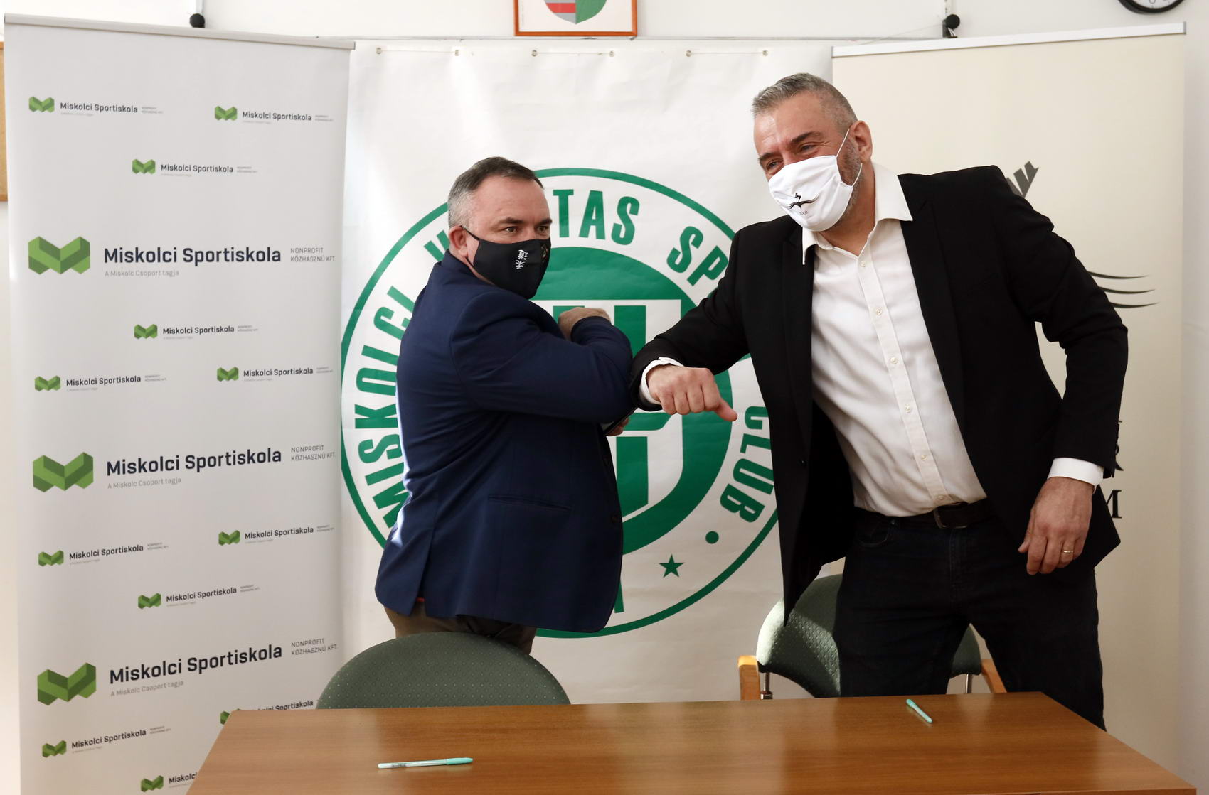 A megállapodás aláírása után – a vírushelyzetre való tekintettel – könyökpacsi váltotta a szokásos kézfogást.