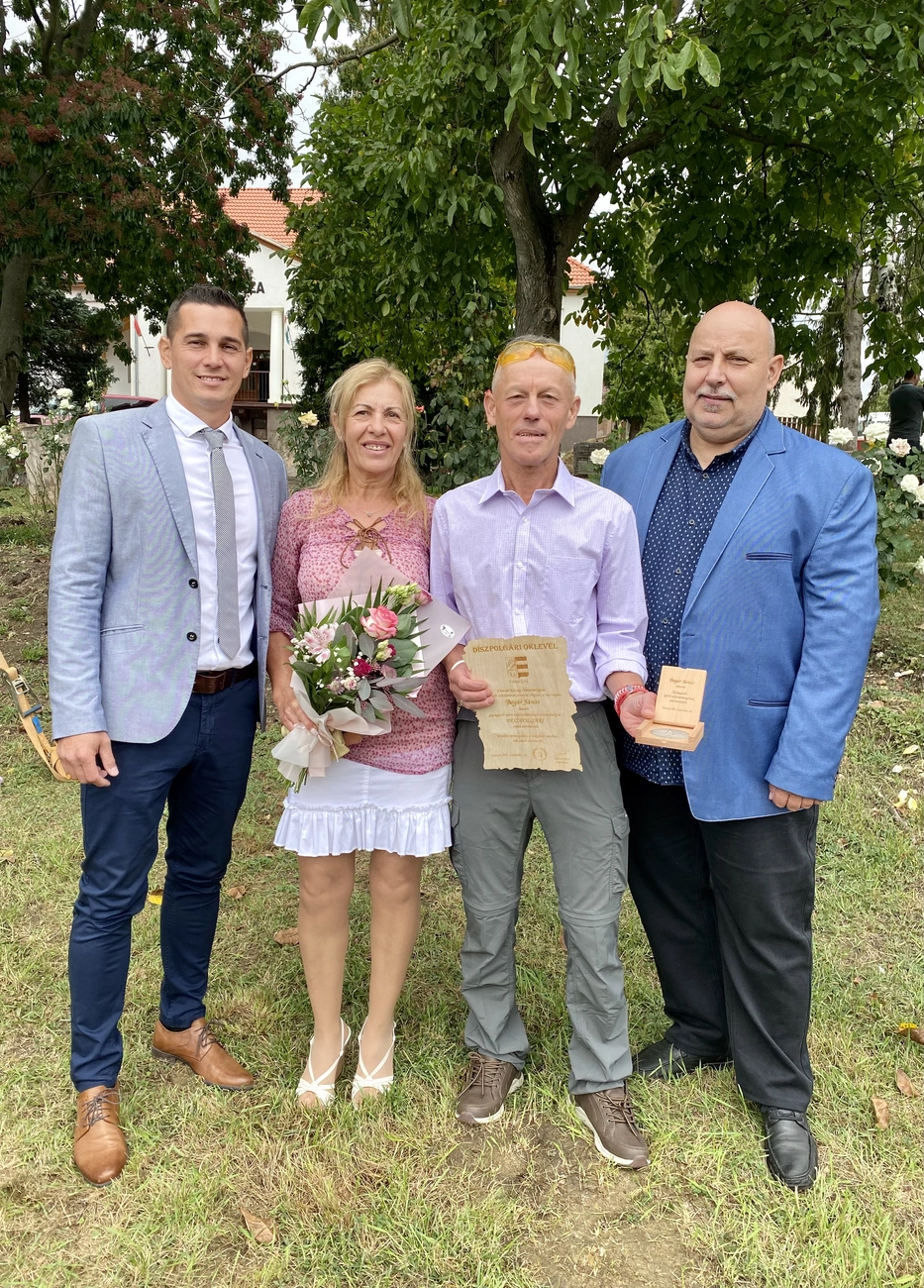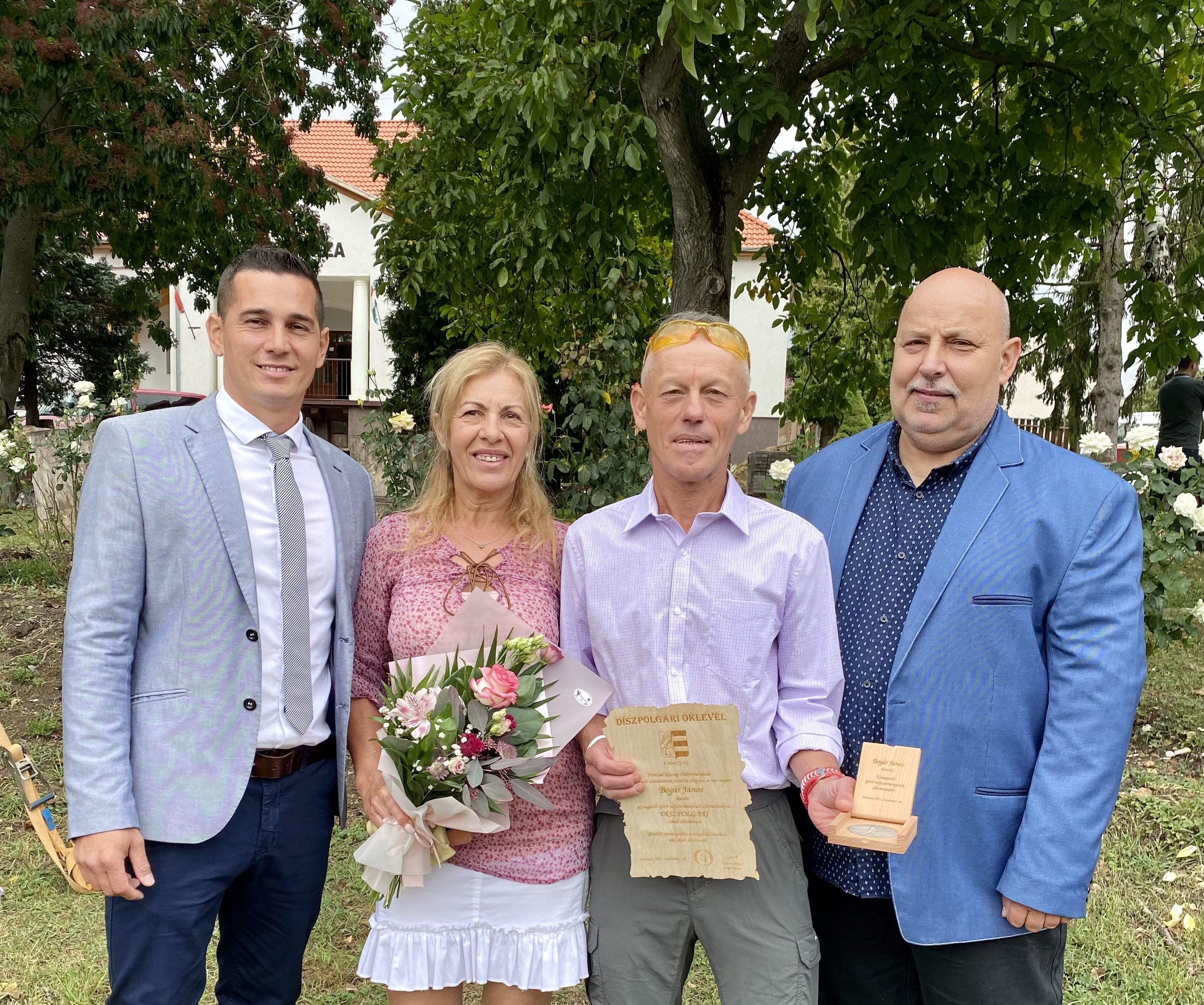 Nyitrai Péter, Fancsal polgármestere (balról), Bogár János, Varga Ildikó és Szűcs István a kitüntetés átadását követően. (Fotó: Magánarchívum)