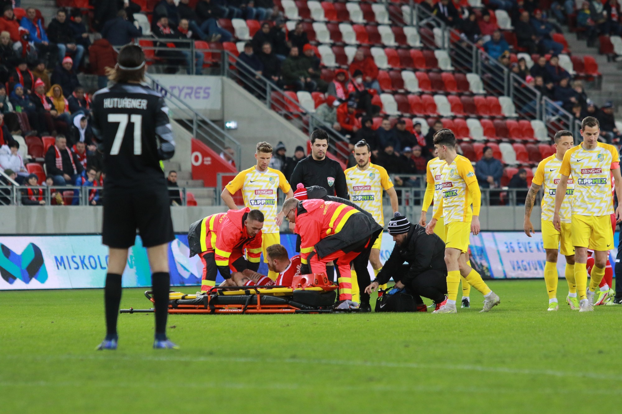 - Hegedűs János agyrázkódást szenvedett, és elrepedt a halántékcsontja, illetve az állkapocscsontja ízületbe hatoló módon tört el, utóbbi miatt műtét vár rá - írja a dvtk.eu. Az agyrázkódás következtében azonnal nem lehet műteni, várhatóan tíz nap múlva kerül sor a beavatkozásra. Ezt követően nagy valószínűséggel hosszabb kihagyás vár rá - tájékoztatott dr. Szabó Zsolt, a DVTK orvosigazgatója.