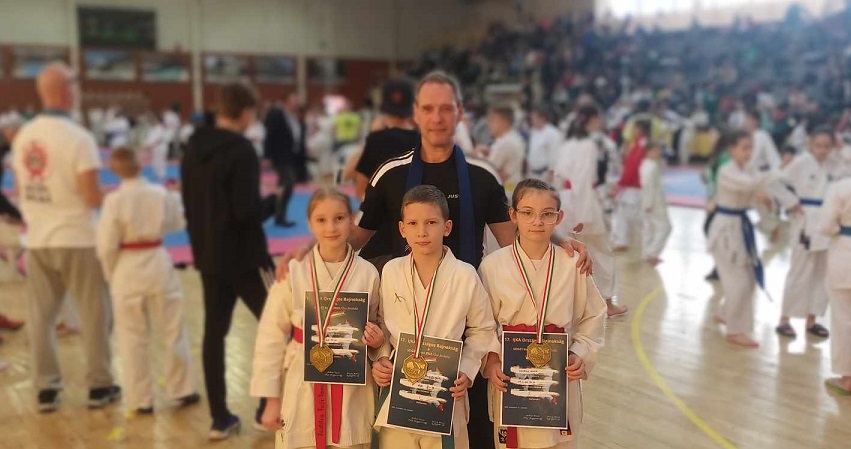 A Sziget kupán Grudzinski Zsolt vezérletével a Tokui dojo tanítványai, a Nagy Lajos Király Általános Iskola növendékei vettek részt. Kovács Elina és Budai Blanka is nyerte mindkét meccsét a Shino katával a 10-11 éves lány kata C kategória versenyszámban, ezzel mindketten aranyérmet szereztek. Kazai Bendegúz szintén két nyert meccs után, első helyen végzett a Seizan és a Heiku katákat bemutatva - tájékoztatta lapunkat hétfőn a miskolci Justitia Fuji-Yama SE.