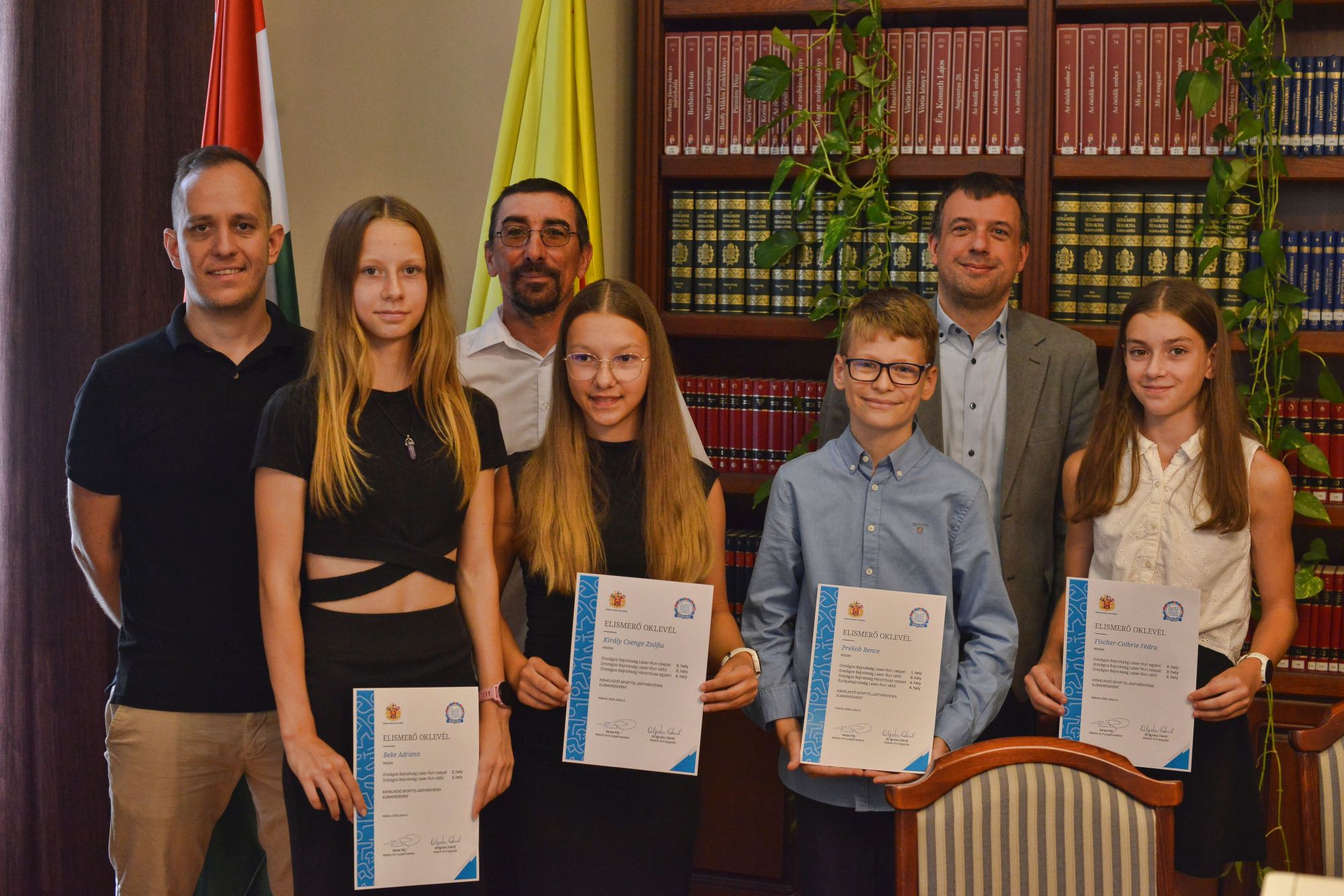 Öt eredményes sportoló kapott elismerő oklevelet csütörtökön, a városházán. Mindannyian U12-es és U13-as korcsoportban indultak és értek el kimagasló eredményeket háromtusa, illetve laser run versenyszámokban hazai és nemzetközi bajnokságokon egyéniben, csapat-, illetve váltóversenyben. Kiemelkedő sportteljesítményének elismeréseként elismerő oklevelet vett át a jelenleg Európa-bajnokságon versenyző Lázár Simon helyett edzője, Zámbori Zoltán, Beke Adrienn, Fischer-Colbrie Fédra, Király Csenge Zsófia és Prekob Bence.