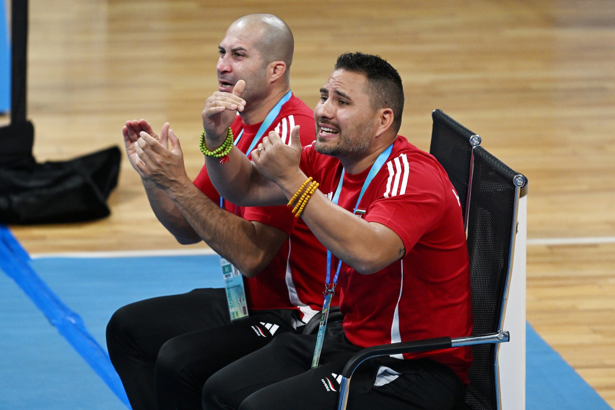 Jászka Krisztián (balra) diósgyőri munkája mellett szövetségi kapitányként is dolgozik. Képünk a csengtui Világjátékokon készült. Fotó: magánarchívum
