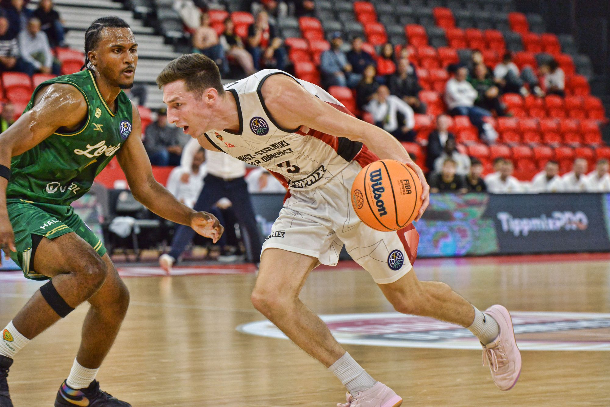 NHSZ-Szolnoki Olajbányász – Patrioti Levice férfi kosárlabda mérkőzést rendeztek szerdán este Miskolcon, a DVTK Arénában. A Bajnokok Ligájában, az F-csoport 1. fordulójában azért itt játszották ezt a meccset, mert a magyar bajnok szolnoki együttes csarnokának befogadóképessége nem felel meg a Nemzetközi Kosárlabda Szövetség (FIBA) erre a versenysorozatra vonatkozó kiírásának.