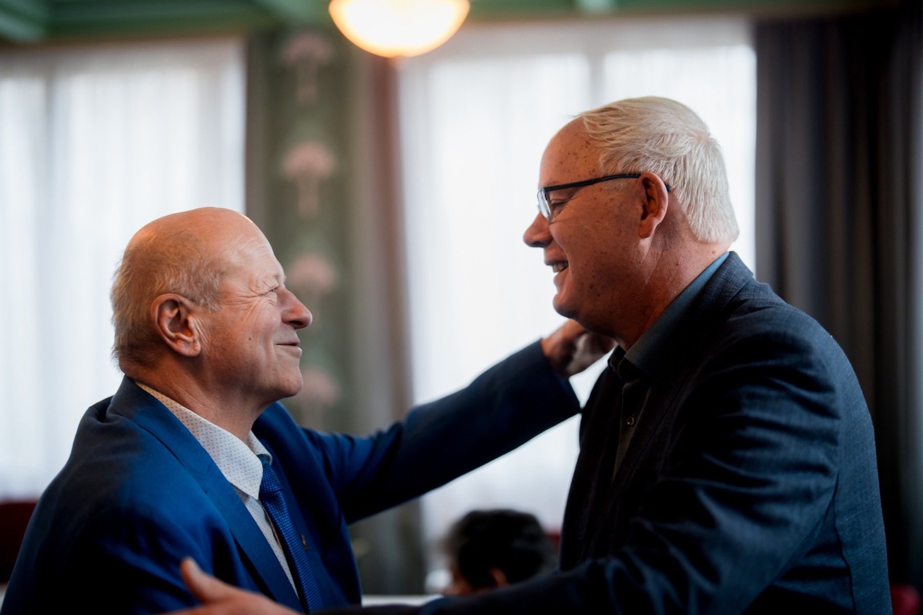 Dr. Schmidt Ádám folytatta a hagyományt: az ünnepek közeledtével újra meghívta a nagy bajnokokat, akikkel jó hangulatú délelőttöt töltött el.