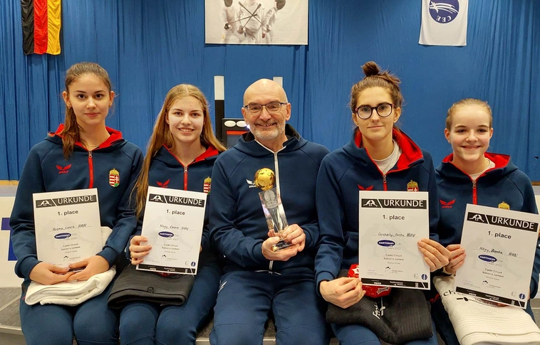 Megszorítani sem tudták a Gachályi Gréta, Nagy Blanka, Nagy Emma, Kozma Laura összeállítású válogatottat a heidenheimi kadet női párbajtőr európai körversenyen.