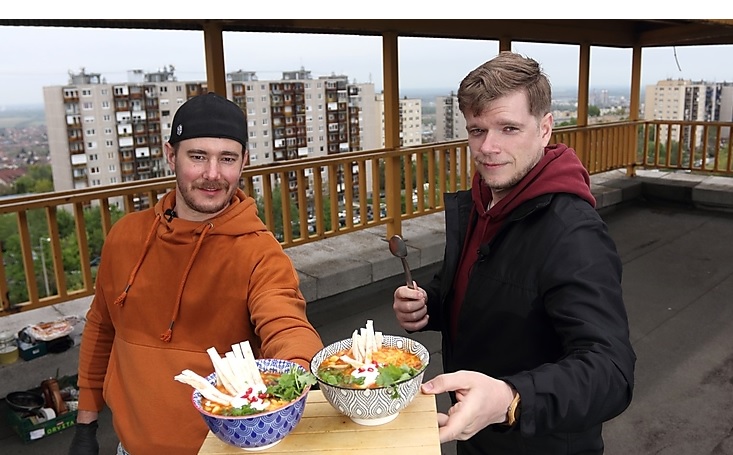 Az első részben Bárczi Tamással, az A Leves Gasztroműhely megálmodójával vágtuk magunkat tetőre – a helyszínről csak annyit, hogy elég jó kilátás nyílt a városra. Tomi stílszerűen levest készített nekünk, egyebek mellett babbal, kukoricával, avokádóval, fűszerekkel és tortillával.