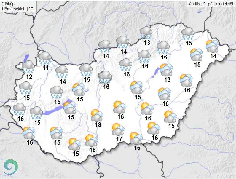 Eszerint napközben egyre nagyobb területen északnyugatira fordul, majd megélénkül, átmenetileg és helyenként pedig megerősödik a szél. A délutáni, esti órákban elsősorban a Dunántúl északi és nyugati megyéiben nagyobb valószínűséggel alakulhatnak ki a záporok mellett zivatarok. A legmagasabb nappali hőmérséklet 16 és 24 fok között valószínű. Az intenzívebb gócokat intenzív csapadék (lokálisan 10-20 mm), apró szemű jég és esetleg szélerősödés kísérheti. Északon lesz a hűvösebb, délkeleten a melegebb. Késő estére 7 és 13 fok közé csökken a hőmérséklet – írják.