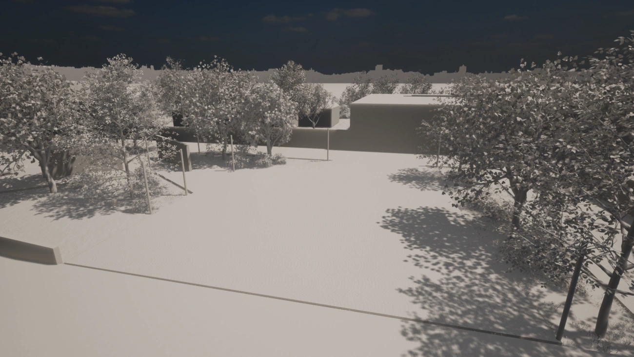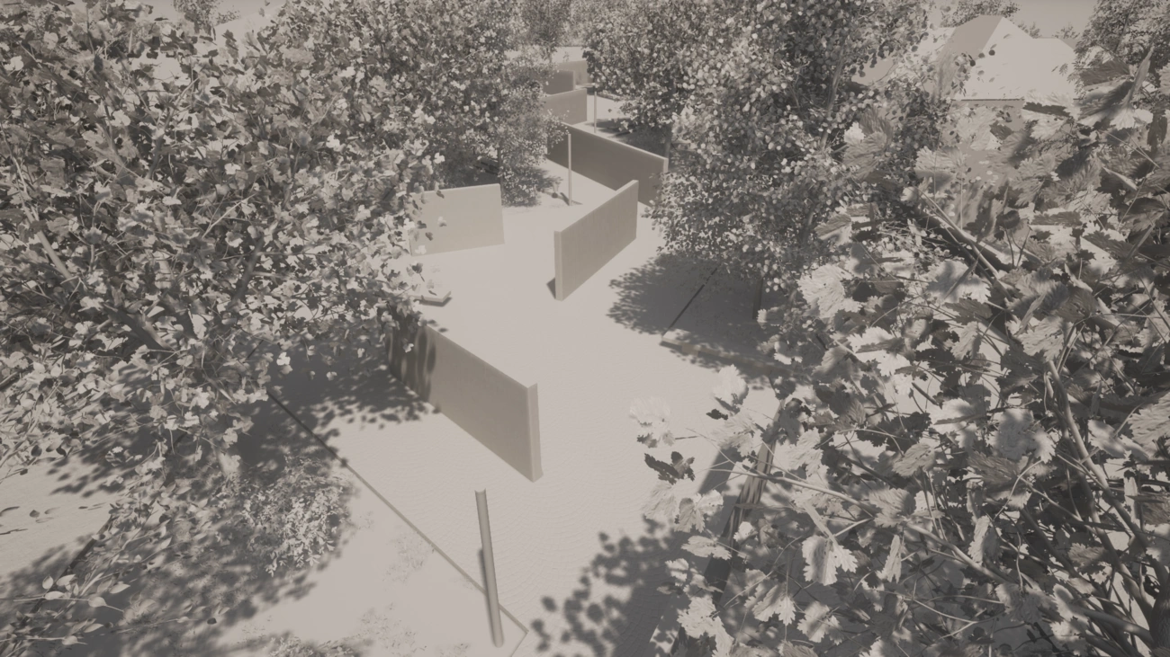 A tervrajzon „művészi összevisszaságban” álló kisebb falszakaszok valójában gondosan tervezetten helyezkednek el, úgy irányítva, hogy ne lehessen elbújni mögöttük – elkerülendő a deviáns tevékenységek (italozók, hajléktalanok) ide vonzását. Éppen ellenkező a cél: időszakos kiállítások, performanszok révén nem állandó, de mégis rendszeres emberi jelenlétet biztosítani a környéken.