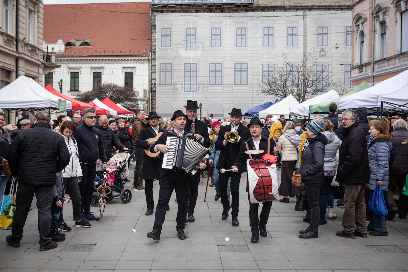 A kilátogatók nemcsak a helyi portékákat kínáló árusoktól vásárolhattak kedvükre, de farsangi mulatságot varázsolt, és jobbnál jobb népi dallamokat játszott számukra az Agyagbanda is – sőt, farsangi álarcot is készíthettek a MINŐIES Alapítvánnyal azok, akik rászánták a vasárnap délelőttjüket, és eljöttek az Erzsébet térre.