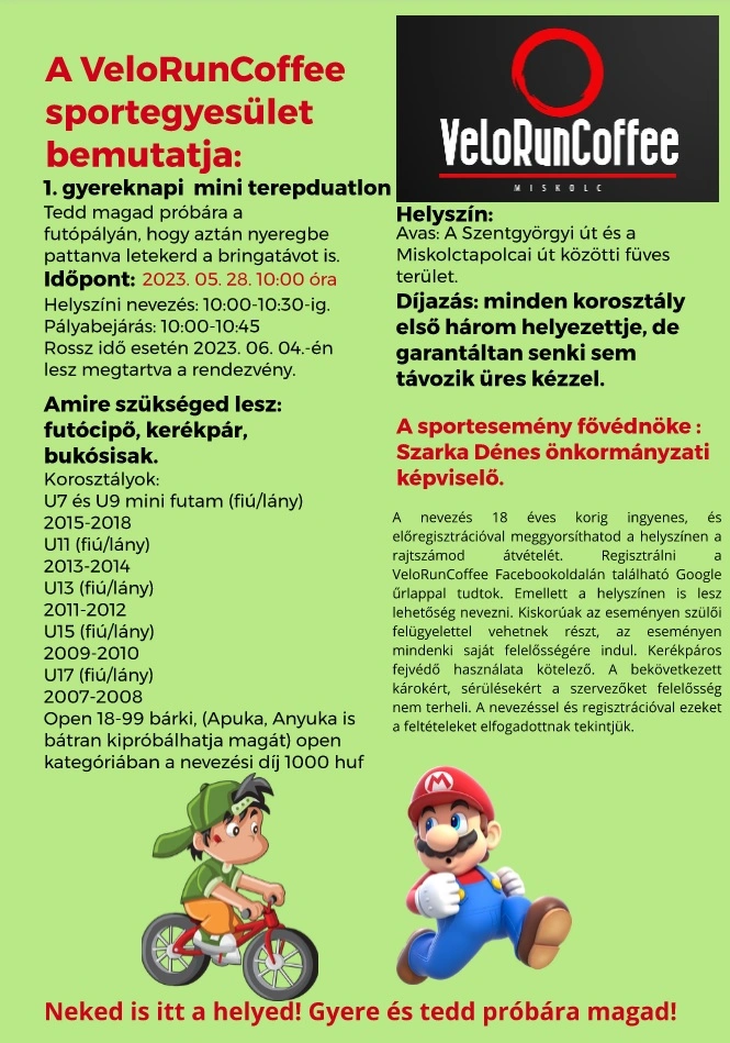 Neked is itt a helyed! Gyere és tedd próbára magad 2023. május 28-án! - hív minden sportszeretőt a VeloRunCoffee SE kerékpáros egyesület.