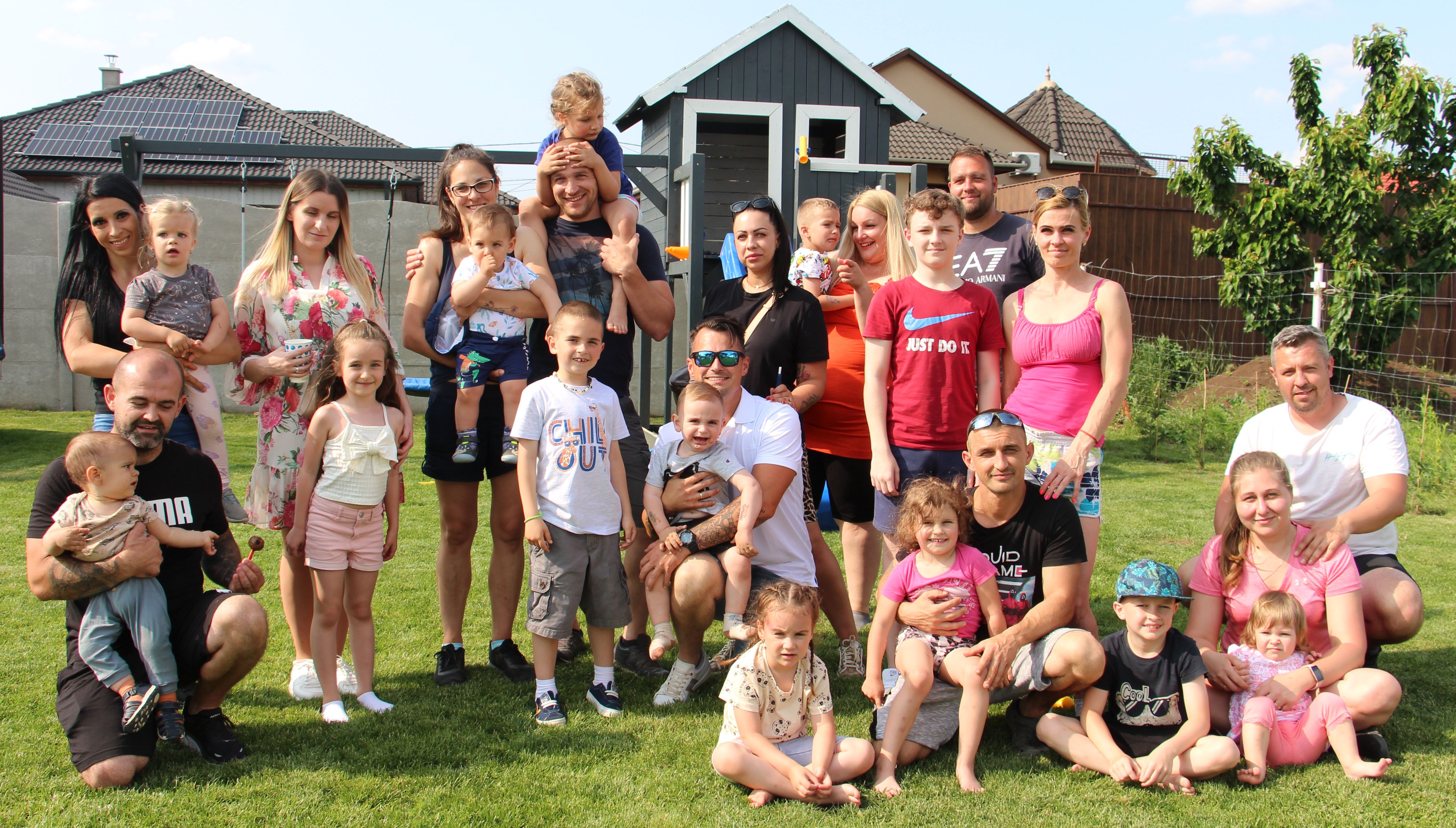 Azonnal birtokba vették az udvaron levő ugróvárat, a mászókákat, a csúszdát, a hintákat, a homokozót, a pancsolót és a labdákat. Önfeledten játszottak. Biztonságosabban érezték persze magukat, ha az anyu a közelükben volt. Ha megéheztek a nagy terített asztalnál finom falatok, édességek, sós sütemények és a manapság kedvenc chipsek, szörpök közül válogathattak.