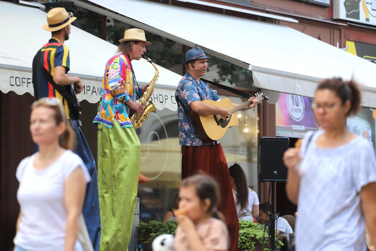 A napfény és a futózápor mellett az utcazenészek adták meg az alaphangulatot a böngészéshez, bámészkodáshoz. Az időben érkezők hallhatták a The Acoustic Affair zenekar műsorát, és találkozhattak többek között a Vaga Banda Gólyalábasokkal is. Akinek kedve volt, az a gyermekkori élményeket felelevenítendő, focizhatott egy jót a Miskolci GombÁszok Gombfoci Egyesület tábláin, két vásárlás között.