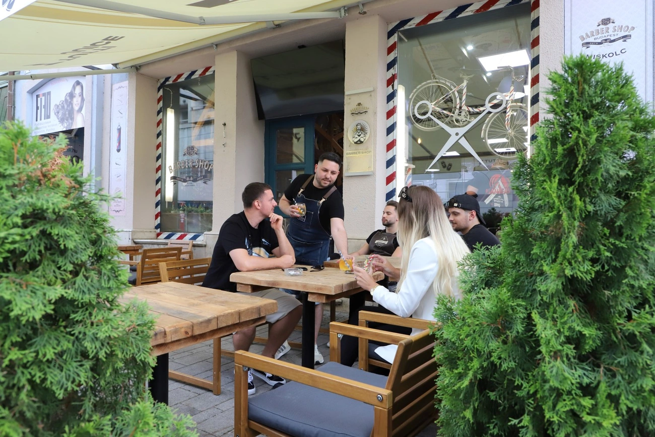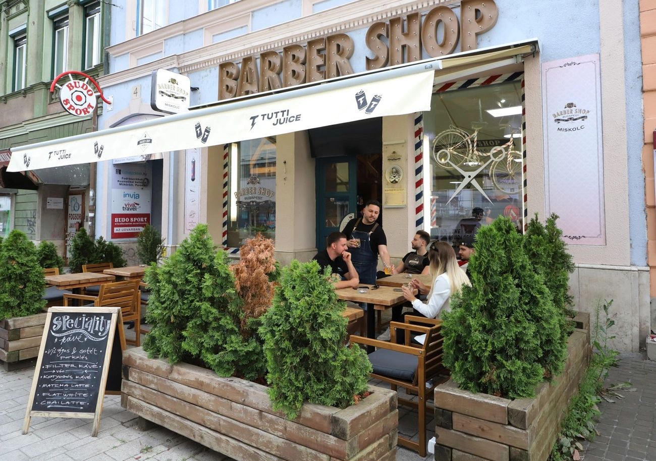 - A teraszbérleti díj elengedéséről még nem kaptam információkat, de ha konkretizálják és teljesíthetők a feltételek, akkor nyilván ösztönzőleg fog hatni, és mi is mögé állunk – fogalmazott a kérdés kapcsán Jantek Tamás, a Barber Shop Miskolc cégvezetője, aki azt tapasztalta, hogy a teraszzöldítést szeretik a vendégeik. - Egyre több, hajvágásra érkező vendégünk tér be hozzánk kávézni is vagy csak egy limonádéra. Az Európa-bajnokság kezdetével egy időben kihelyeztünk egy televíziót, ami mellé csapolt sört is értékesítünk, ahogy illik – fogalmaz Jantek Tamás, aki szerint a terasznak köszönhetően egyre inkább közösségi térré válik a szalon.