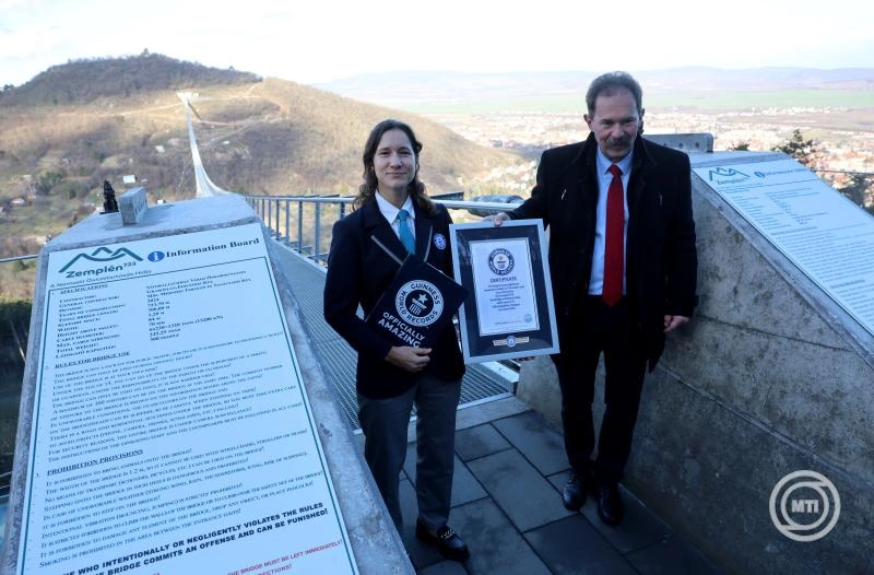 Guinness-rekord tanúsítványt kapott a Nemzeti összetartozás hídja szerdán Sátoraljaújhelyen, amely 723 méterével a világ leghosszabb fesztávolságú gyalogos függőhídja lett – számol be a hírről az MTI.
