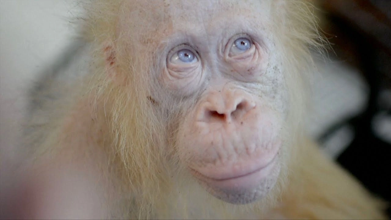 A fehér bundájú, kékszemű nőstényt 2017-ben fogták el egy falu lakói Borneó középső részén, Kapuasz Hulu körzetben, a hatóságok két nappal később kiszabadították a ketrecből, amelybe a falusiak zárták. A bántalmazott albínó akkor rendkívül rossz állapotban volt, és egy állatmentő állomására került, ahol állapota gyorsan javult.