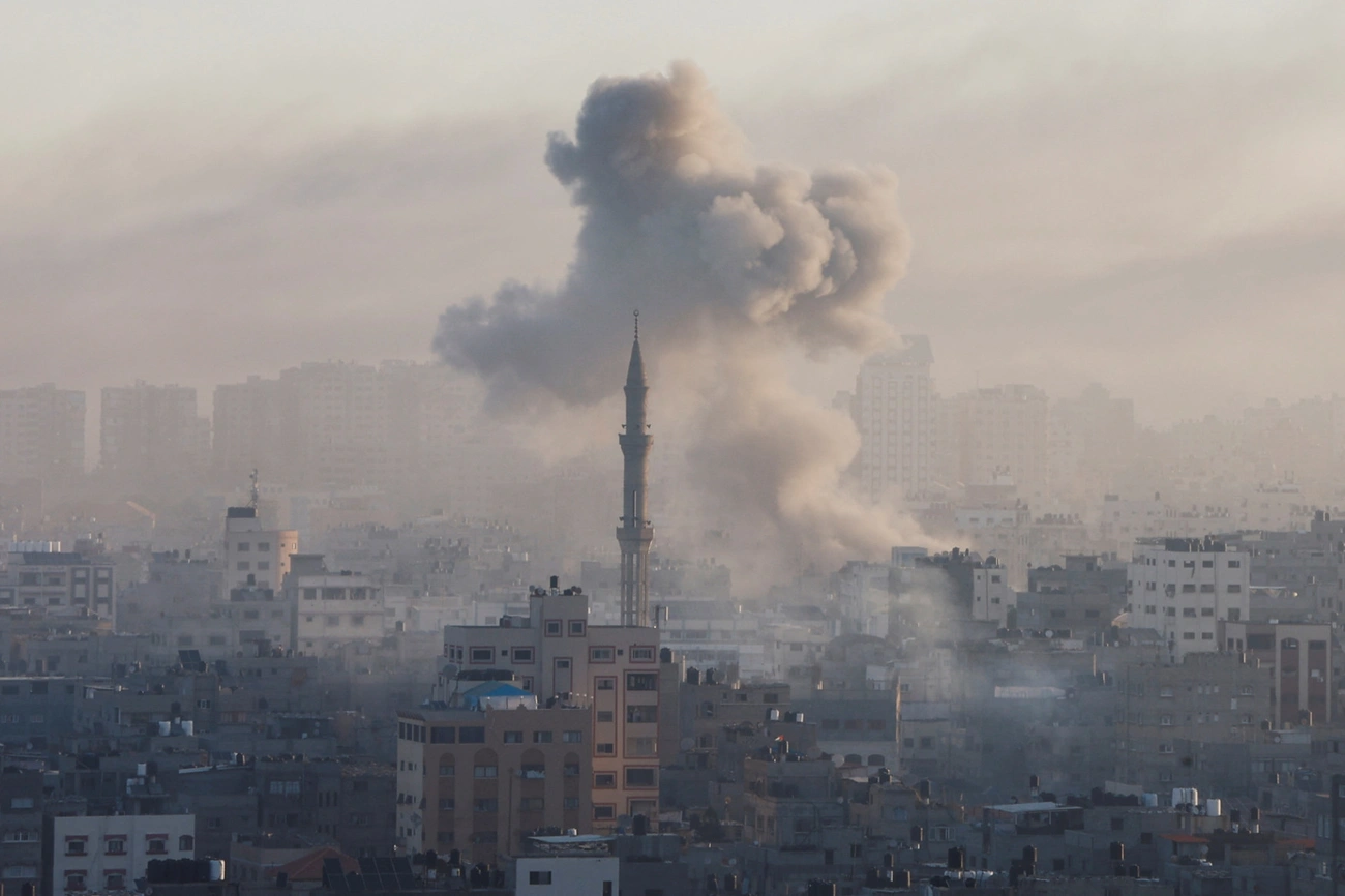 Füst gomolyog az izraeli csapásokat követően Gázában, 2023. október 13-án – Fotó: Mohammed Salem / Reuters (telex.hu)