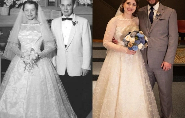 Amikor a Wisconsin államban élő Christina Moffet meglátta a nagymamája 1956-ban készült fekete-fehér esküvői fényképét, egyáltalán nem gondolta, hogy ő is ugyanabban a menyasszonyi ruhában fog férjhez menni. Egészen addig, amíg fel nem próbálta a ruhát.