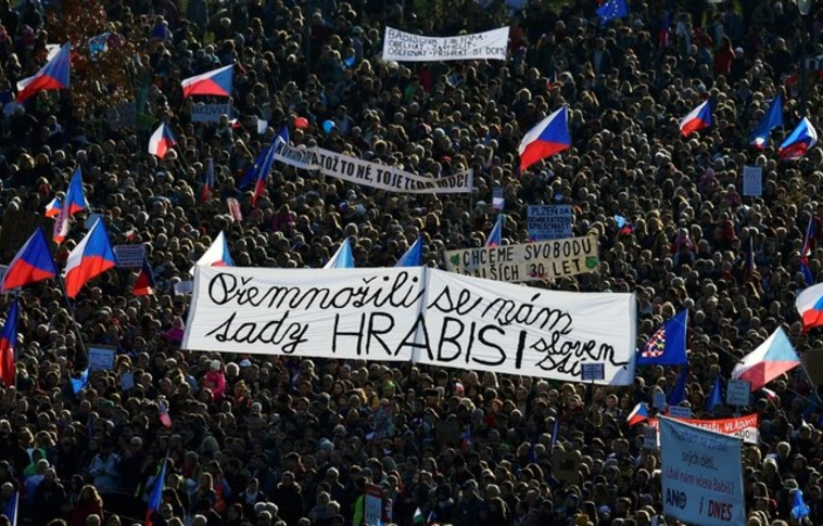 Százezrek követelték a cseh kormányfő lemondását Prágában