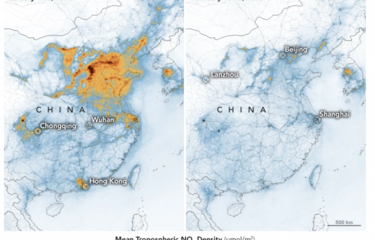 A légszennyező anyagok és üvegházhatású gázok légköri koncentrációjának jelentős csökkenését észlelték a világ bizonyos városai és régiói felett a koronavírus-járvány miatti intézkedések nyomán.