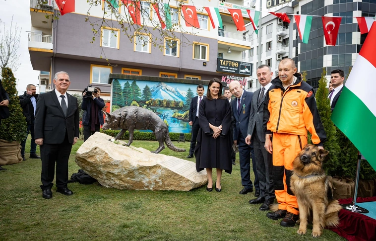 Hungarikum lett Mancs a törökországi Kocaeli városában. A legendás magyar mentőkutya szobrát Novák Katalin avatta fel.